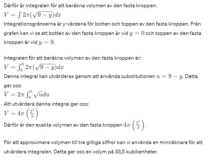 Rubriken har ändrats från "Grundläggande nivå fråga." till "Volym av y-roterande kropp". Att skriva en bra eller lämplig rubrik som beskriver/återspeglar frågan/tråden underlättar betydligt för andra som söker/googlar efter samma fråga. Tråden har också flyttats från Alla trådar till Integraler och tillämpningar. /admin