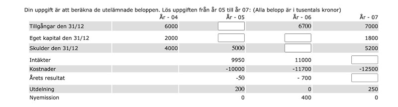 Den ska alltid gälla, annars har man gjort fel någonstans.Vi vet att E = 2000 vid utgången av år 4.