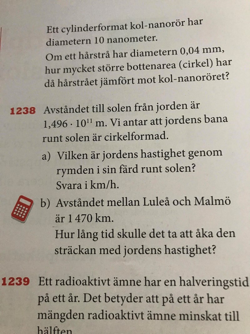 Hur lång är omloppsbanan? (Det är en cirkel och du vet radien)