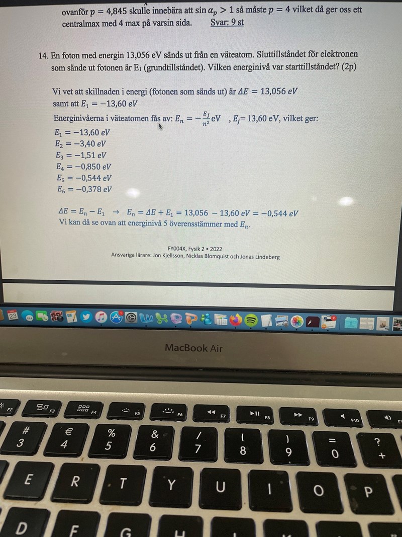 Jag tränar på gamla fysik 2 tentor inför min tenta och förstår inte riktigt denna fråga. Hur vet man E1? Är det en konstant? Och vad betyder n^2?