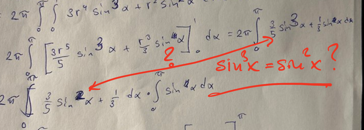 Men det du markerade hade jag redan ändrat det kanske inte var så tydligt just där för att 2 stryckts över, men på andra raden så har jag ju byt sinkvadrat med (1-cos(2x))/2.