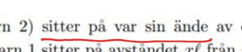 Liksom problemet är att jag ej vet vad m2 avstånd i förhållande till punkten den hängs upp så jag vet ej hur jag ska skriva en ekvation