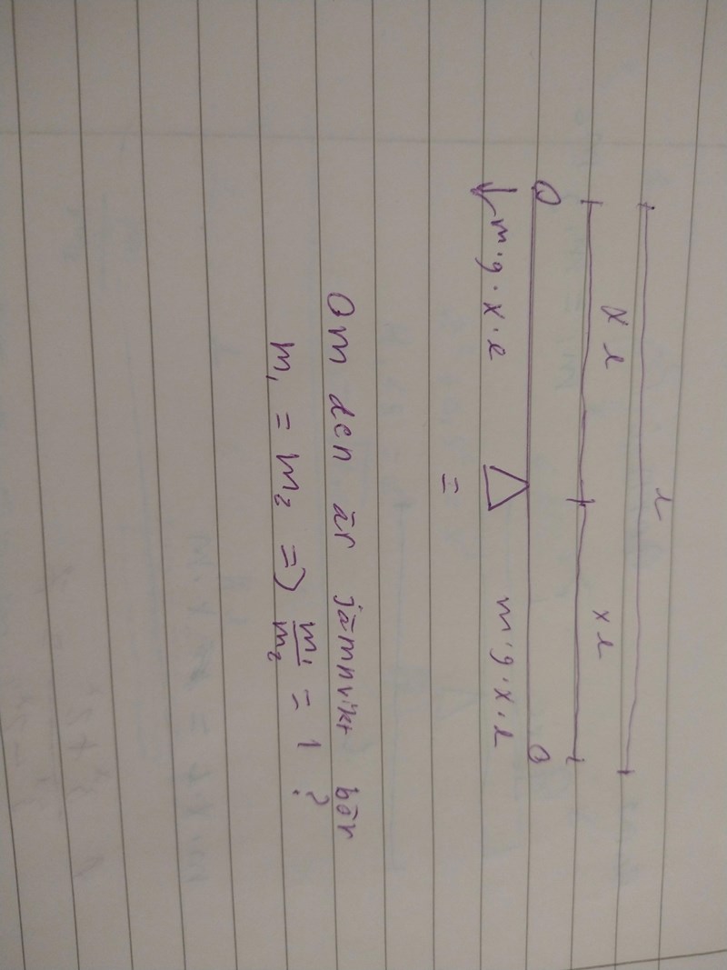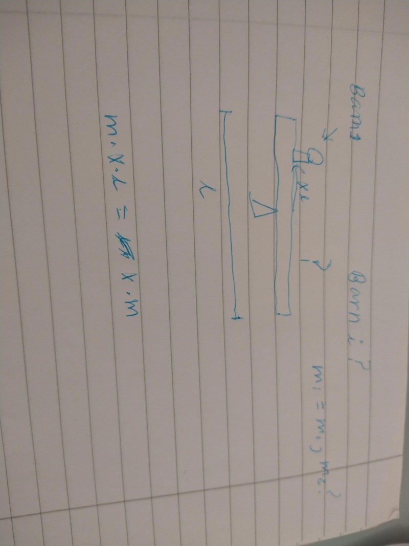 Är jag helt ute och cyklar, för jag förstår inte felet, om avståndet är detsamma bör vikterna vara det med eller de som slår mig är att gunbrädan kan va uppsatt på ett annat ställe än mitten men liksom hur ska jag ta reda på den andra längden. Jag kan inte se mönster i svaret och uppgiften. Liksom M * Xl vilket jag ej vet alls vad de är måste vara det samma som M2 * en längd som är antingen längre ifall vikten är mindre eller kortare ifall vikten är störe men jag har ej något att beräkna på och de gör mig typ ganska förvirrad.