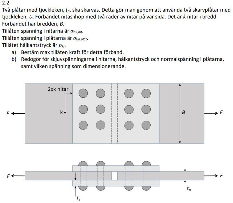 Ph är tillåtet maximal hålkanttryck (250Mpa). Jag ska använda t som har minsta projicerad area, i detta fallet är det ts.