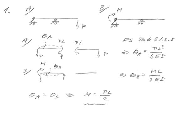 I andra steget så räknar de ut vinkeln vid vänstra sidan för att den ska vara noll () vid en fast inspänning. Detta gör de genom att dela respektive balk på mitten och räkna med elementarfall från formelsamlingen.