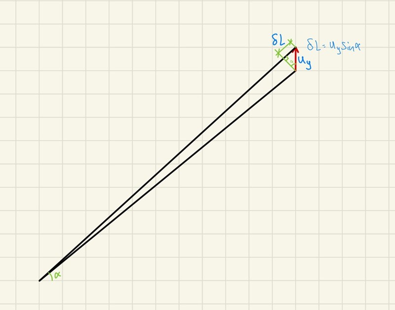 Där vi anser att förskjutningar är små om de är så små att resttermen kan försummas, och vi får ett linjärt uttryck för förlängningen.