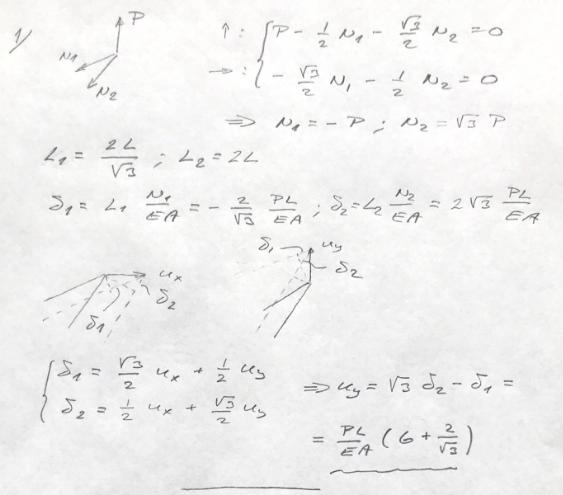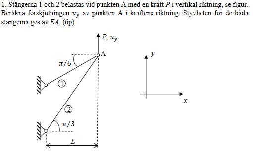 Vad är det som sker under materialsambanden delta_1 och delta_2 i facit? (Alltså i deformationsfigurerna) Man har ansatt ett u_x och u_y som ser ut att vara projektioner av delta_1 samt delta_2 men delta_1 och delta_2 är också linjärkombinationer av u_x och u_x? Hur kommer det sig? Detta sker konsekvent i liknande uppgifter och jag förstår inte riktigt tankesättet.
