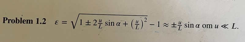 Hej! På denna uppgiften förstår jag ej slutsteget. Jag är med på att (u/L)^2 är försumbart liten jämfört med de andra termerna, men förstår inte hur ettorna tar ut varandra eller hur jag ska förenkla så att jag får bort rotentecknet. Kan någon hjälpa mig?