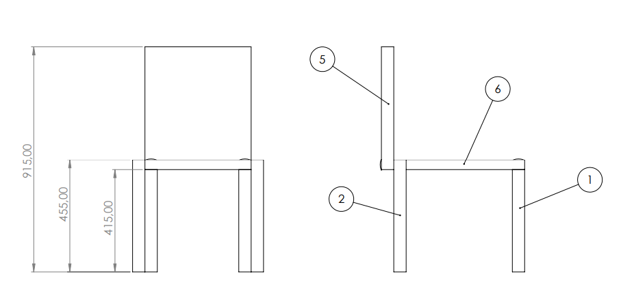 Limmets tau-tillåten är 27N/mm^2, säkerhetsfaktorn är 1.4, sitsen väger 70kg, ryggstödet väger 83kg, en person som väger 110kg sitter på stolen och personens kraft är jämt fördelat på sitsen, personen lutar sig mot ryggstödet och kraften påverkas i mitten av ryggstödet och är 45kg.
