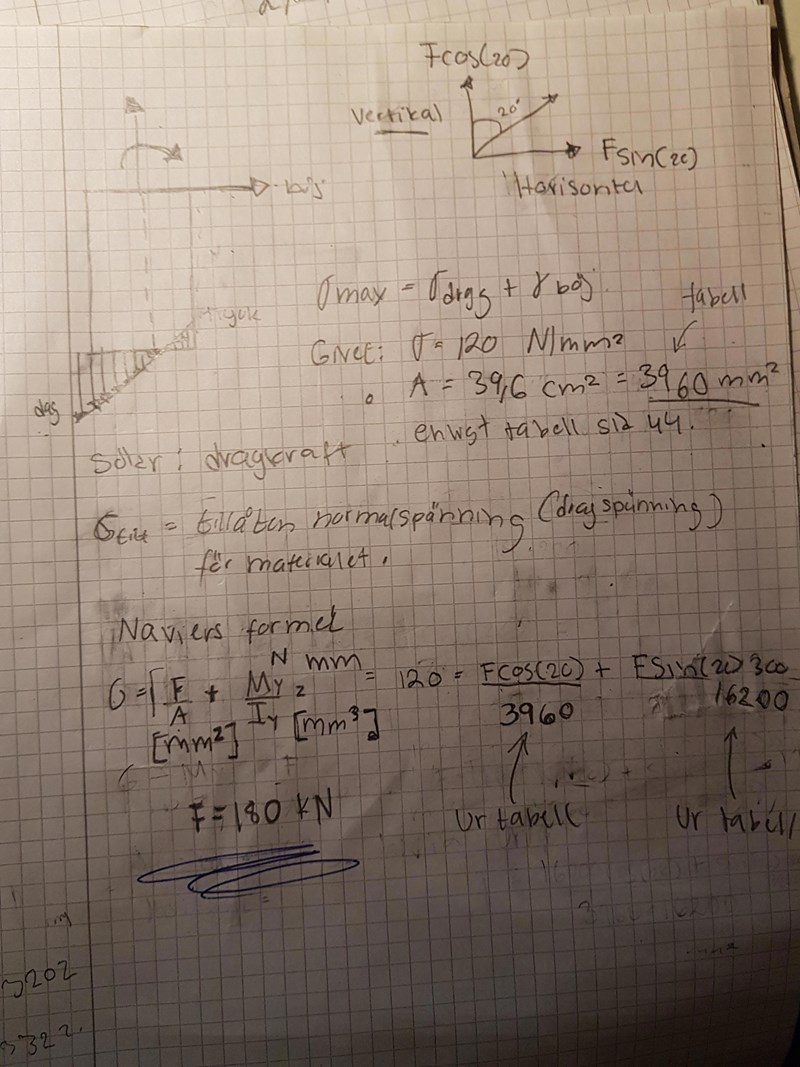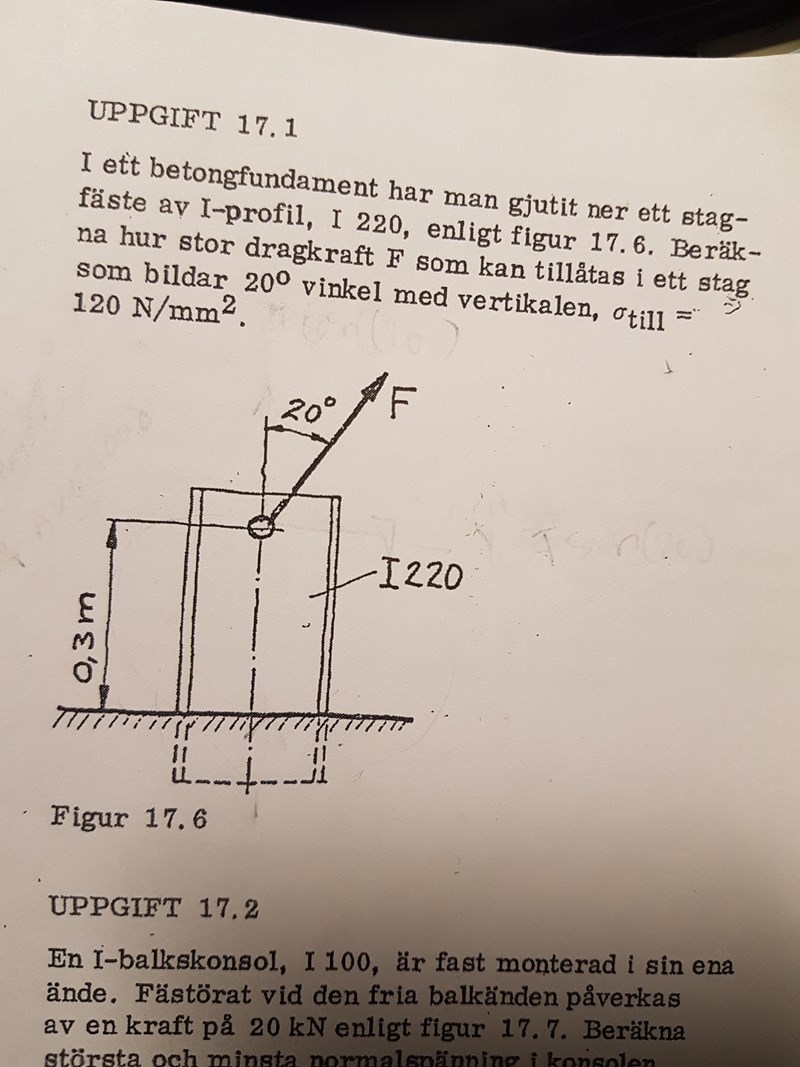 Jag behöver hjälp med uppgift 17.1. Svaret ska bli F=198 kN jag får fram F=180 kN.