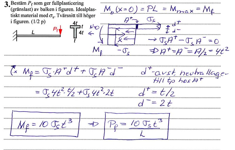 Vid fullplasticering har tvärsnittet uppnått sträckgränsen (konstant) över hela tvärsnittet. Vid böjning drag och tryck.