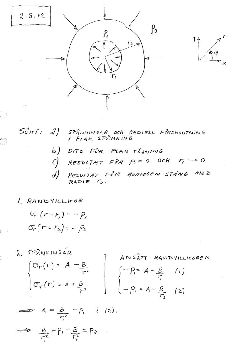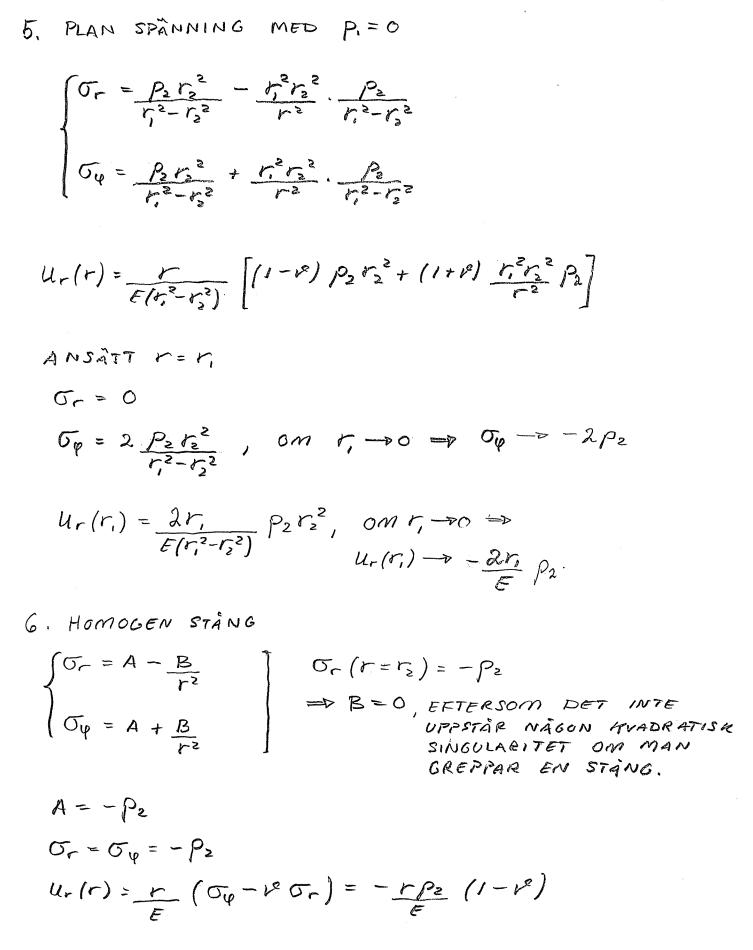 De vill alltså att man räknar ut alla spänningar (r-led, phi-led och z-led) och radiell förskjutning under två specialfall, plan spänning respektive plan töjning.