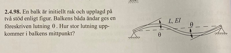 Maja9999 skrev:Ahaa yes okej. Jag testade det från en början men det var då jag inte fick med ”EI” termen i w(x) funktionen, men den kanske inte ska vara med här? (Dock satte jag inte ena vinkeln till negativ, så ska testa igen!)