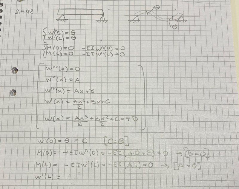 Hmm jag förstår inte riktigt. Här står det ju att w’’=0 alltså M=0