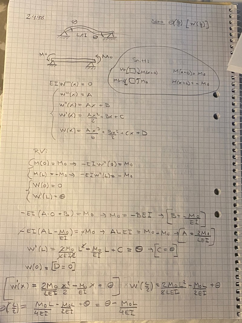 Ahaa yes okej. Jag testade det från en början men det var då jag inte fick med ”EI” termen i w(x) funktionen, men den kanske inte ska vara med här? (Dock satte jag inte ena vinkeln till negativ, så ska testa igen!)