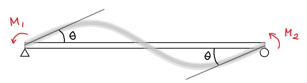 Det uppstår ett böjmoment inuti balken där, för att du har en föreskriven vinkeländring, ja. Det är faktiskt synonymt med att du vrider med ett moment vid och av en viss storlek och detta producerar samma resultat.