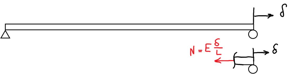 Här står det att men, återigen, vi får en horisontell kraft vid stödet inuti balken på grund av den föreskrivna förskjutningen .
