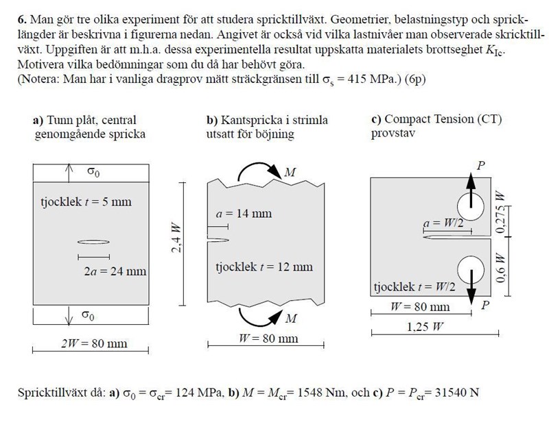 För denna uppgiften specifikt diskuteras inte cykler eller någon rent dynamisk förändring av sprickans storlek. Således rör det sig här sannolikt om att titta på tabeller och empiriska modeller från din formelsamling. Uppgiften i sig tror jag är mycket enkel därefter. Har du en formelsamling?