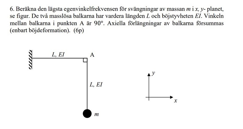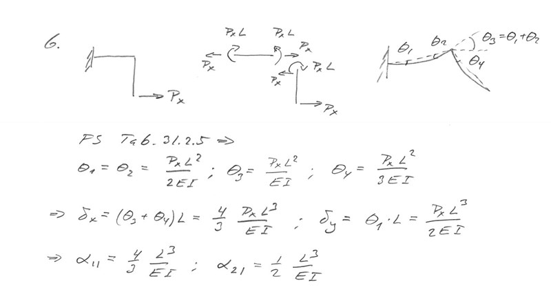 Sedan har du då en vinkel på den övre balken som den nedre balken måste relateras till vilket gör att dess utböjning blir denna vinkel gånger längden på nedre balken plus utböjning enligt elementarfall 1. Denna gång också med och .