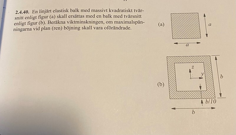 Truppeduppe skrev:CurtJ skrev:Maja9999 skrev:Truppeduppe skrev:Man kan inte räkna på böjmotstånd sådär, dvs räkna böjmotståndet för en hel kvadrat och sedan dra av böjmotståndet för den inre kvadraten.