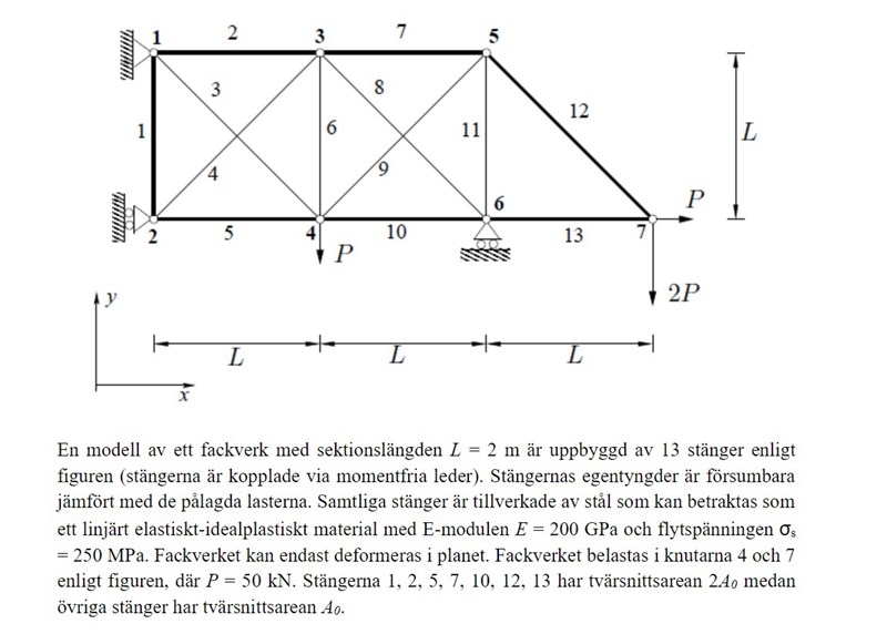 Hej allesammans! Behöver lite hjälp med att komma igång med en uppgift i hållfasthetslära. Uppgiften går ut på att räkna ut stångkrafter i ett fackverk.