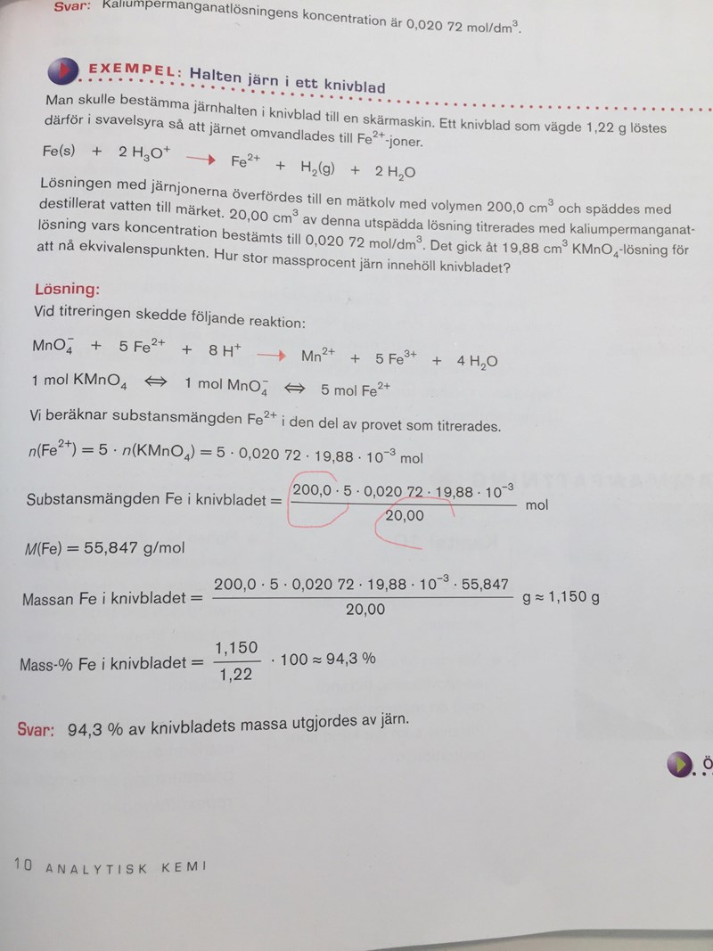 20 ml är volymen av det prov av denna lösning man tog ut och titrerade på.
