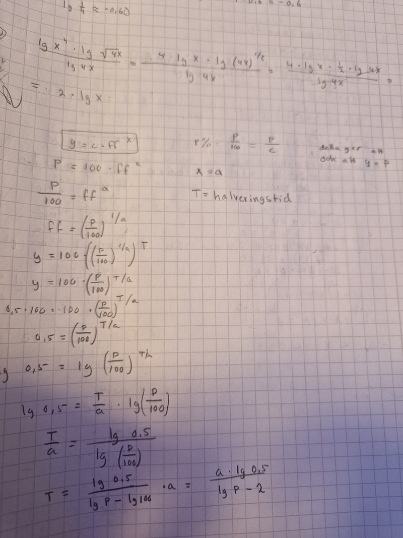 Svar: Halveringstiden är a (log 0,5) / log (p/100).