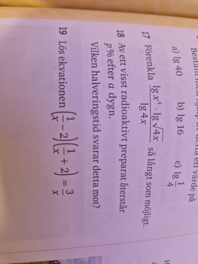 Jag tror du fixar att lösa ekvationen. Du loggar båda led