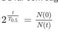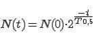 Först: är halveringstiden, 0.5 ska inte tolkas som ett eget tecken utan är ett index eller en beskrivning av vilken tid det är som avses. Du kan skriva det genom att använda antingen rottecknet i menyn, vilket tar dig till formelinmatning, eller genom att skriva latexkod mellan dubbla dollartecken: $ $T_{0.5}$ $ (men skippa mellanrummen mellan dollartecknen).