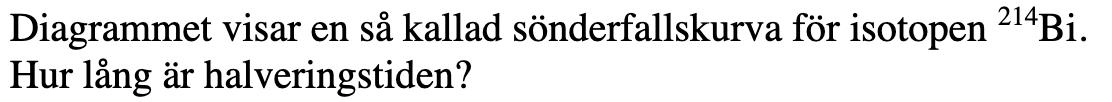 Jag tycker att värdet "18 minuter" inte stämmer helt bra med figuren. Då skulle det vara 25 gram efter 36 minuter (12,5 gram efter 54 minuter), och det är det inte riktigt tycker jag.