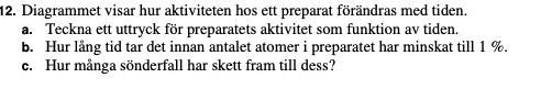 ja exakt, det jag undrar över är att borde inte mängden "aktivitet" alltså när det är 1% av det ursprunliga vara detsamma som antalet atomer är 1% av det urspunliga?