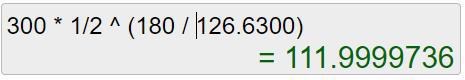 Jag vet inte om du har lärt dig om naturliga logaritmen (ln) ännu, men du kan även räkna ut halveringstiden med formeln