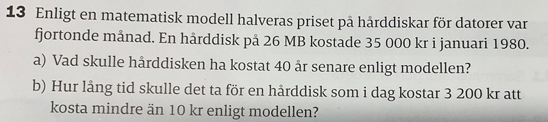 KlmJan skrev:i exponenten ja. För jag tänkte att om a=0,5^(1/14) så har vi fortfarande inte fått så att säga "riktiga" exponenten i funktionen, dvs x/T där x är tiden och T är halveringstiden.