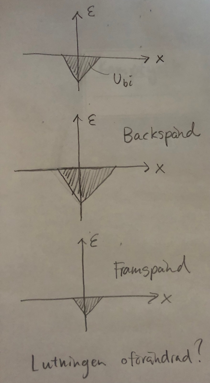 Jag har här skissat det elektriska fältet för en PN övergång och hur det förändras med back-/framspänning.