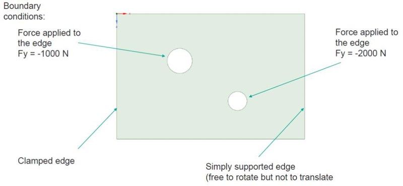 Hm, vid första anblick bör den nominella beräkningen vara ganska långt från den vilken beräknas medelst FEM. Hur långt är proportionerligt till radien på hålen i förhållande till representativa dimensioner (längden). Från hur det ser ut i bilden är hålen väldigt stora och att approximera krafterna som punktkrafter kommer ge ett annat resultat. Om det bör vara konservativt eller ej kan jag inte säga på rak arm.