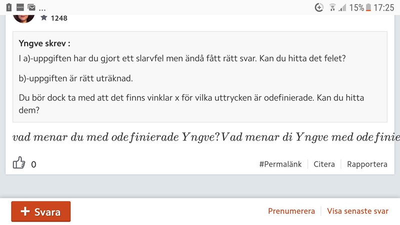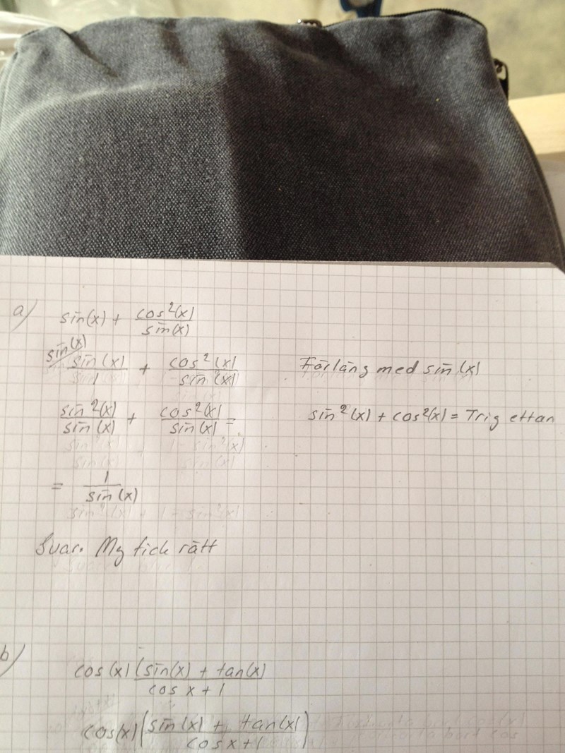 Yngve skrev :I a)-uppgiften har du gjort ett slarvfel men ändå fått rätt svar. Kan du hitta det felet?