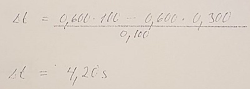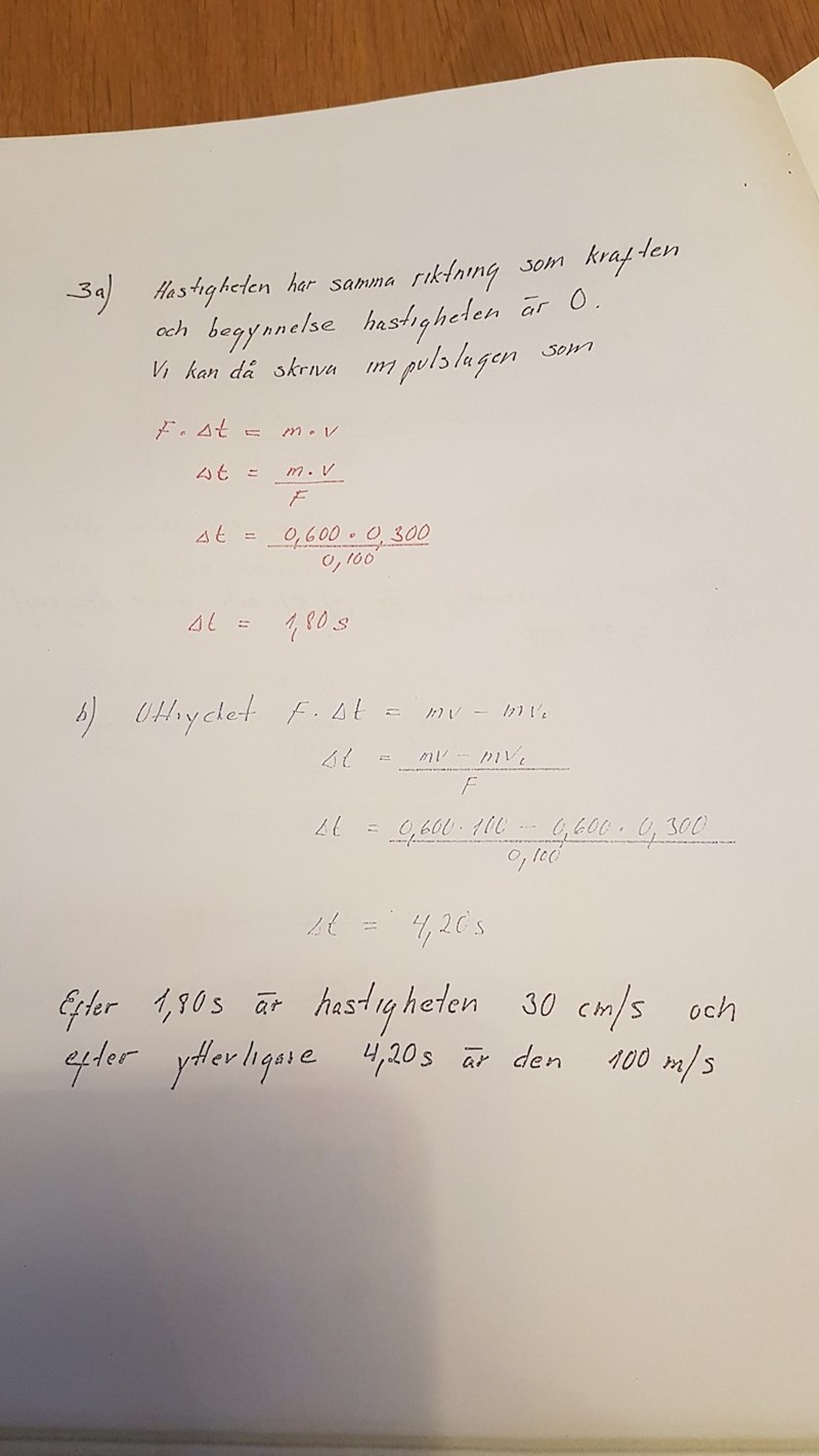Det är lärarens uträkning som är med som facit! Tror själv att fråga b ska vara 100cm/ s inte 100m/s om det nu inte är slutsvaret 4,2 som är fel?