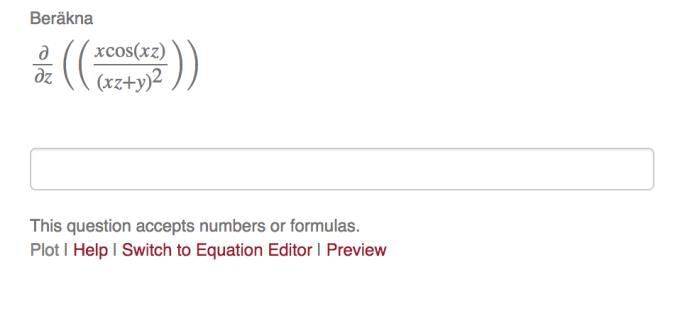 har jag kommit fram till (-x^2sin(xy)(xz+y)+2cos(xz)) / (xz+y)^3