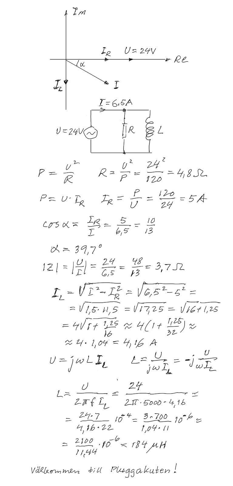 Jag har räknat på sista deluppgift ganska länge. Vet inte hur jag ska få fram reduktansen för att sedan räkna ut induktansen. Jag vet inte riktigt heller varför min resistans är större än impedansen? är inte impedans resistans + reduktans? Jag är helt lost. All hjälp uppskattas.