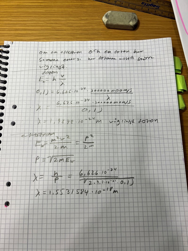 Jag gör ett räkneexempel och jag får att våglängden hos fotonen är mindre…
