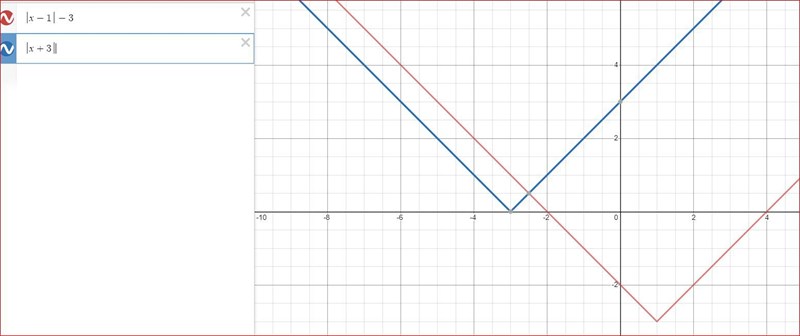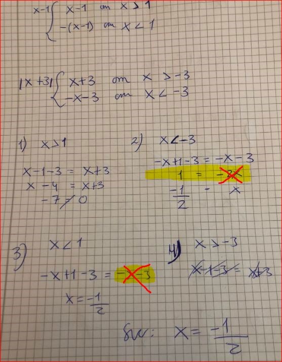 - Det gäller inte att |x+3| = -x-3 i hela intervallet x < 1