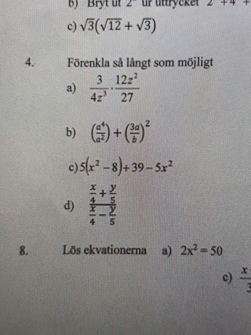 Det är uppgift 4 b jag behöver hjälp med. Jag undrar ifall jag har förenklat rätt, och om inte vart det blev fel. Skulle även uppskatta en förklaring till varför det blev fel.