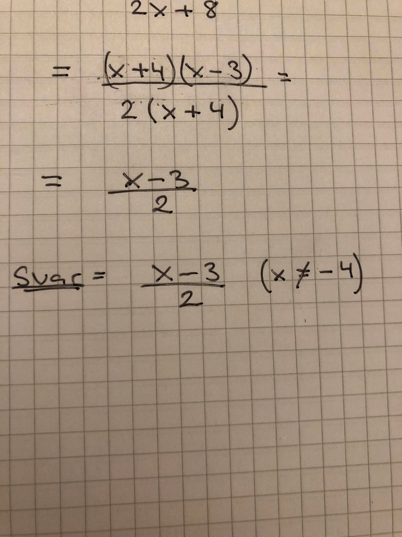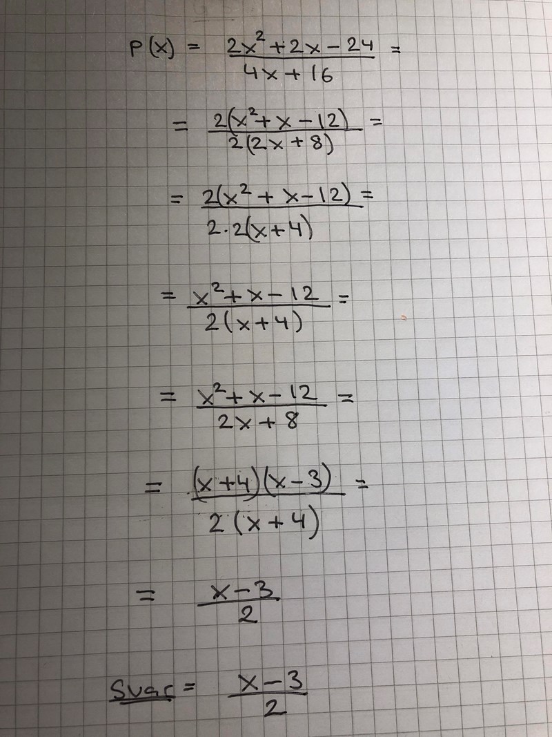 Använd det ursprungliga uttrycket för P(x) och beräkna P(-4). Vad händer?