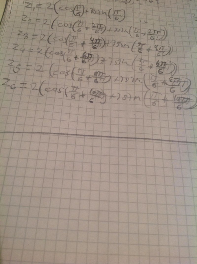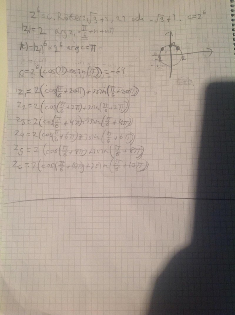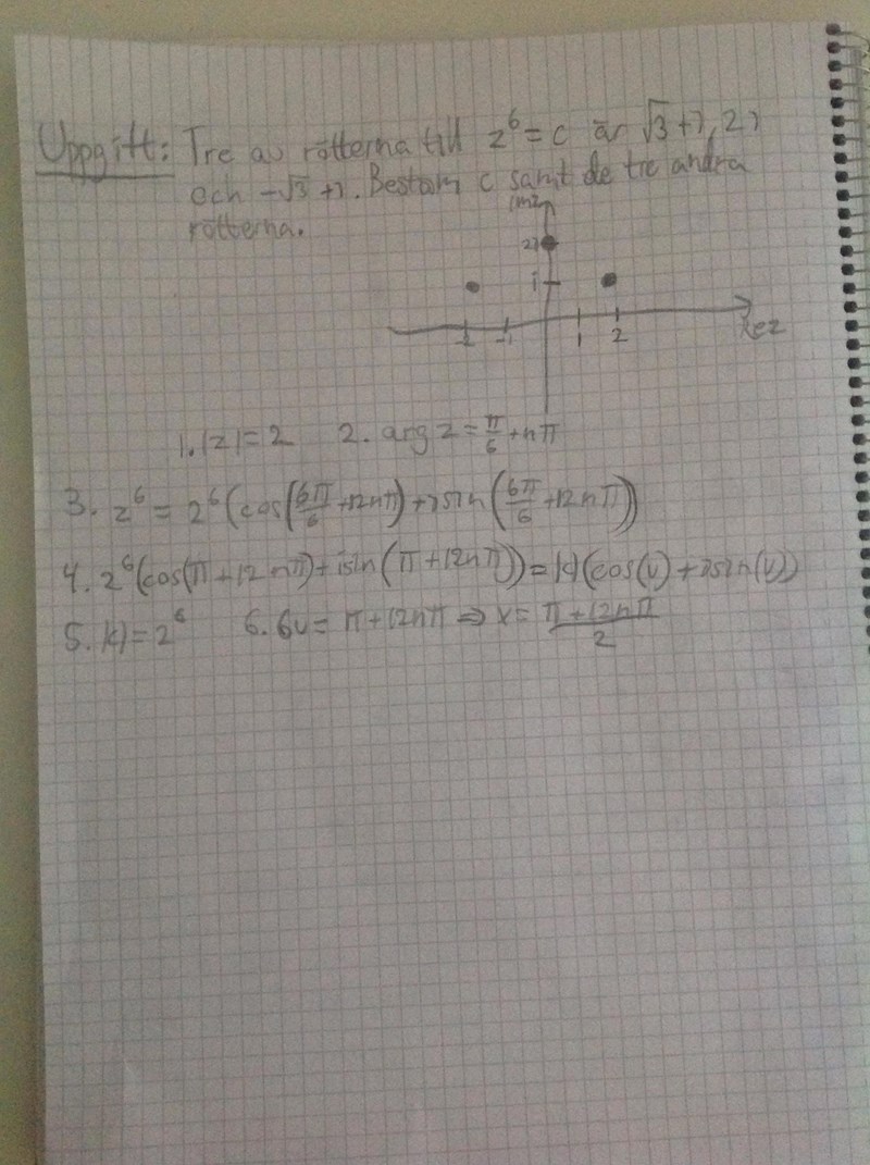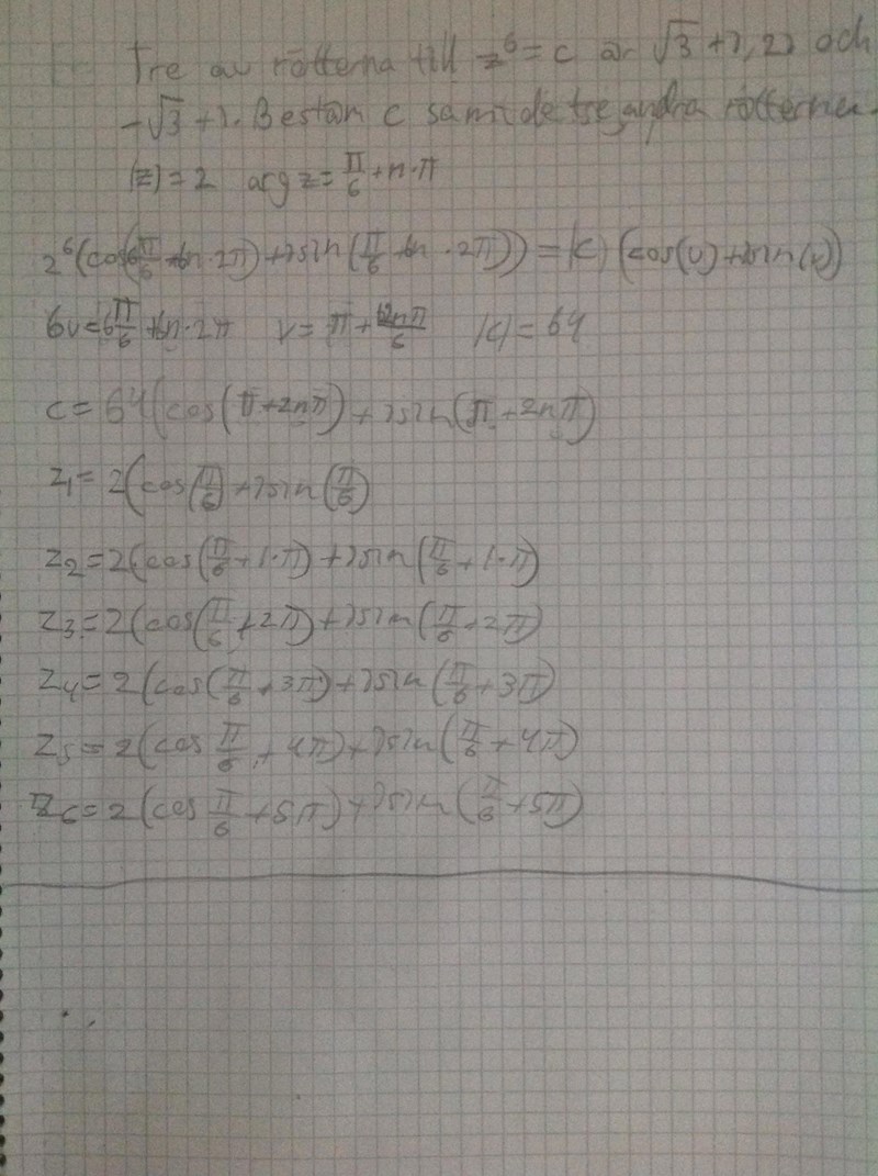 osäker det där med hur vinkeln ska skrivas om. Hur tex ska argz skrivas om när det är z^6. Lite där jag fastnar känner jag.