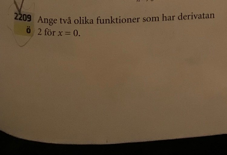 Det stämmer! Om du vill vara tydlig kan du kontrollräkna och visa att derivatan då x = 0 verkligen är 2.