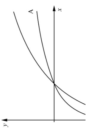 Då e är en mindre bas än 10 måste e få en större exponent för att nå samma värde som 10lg(x) så det borde vara lg(x) som är det lägre av talen, och därmed det som markerats med A.