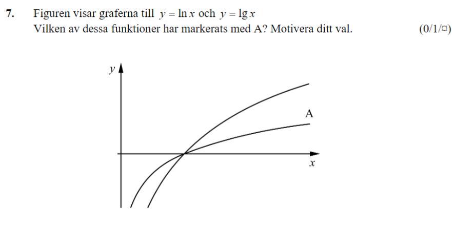 Ett annat sätt är att notera att lg(10)=1, men ln(e)=1, och e < 10, varav ln(x) > lg(x).