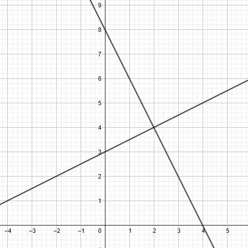 När du nu har punkten (2, 4), varför ritar du inte mittpunktsnormalen?