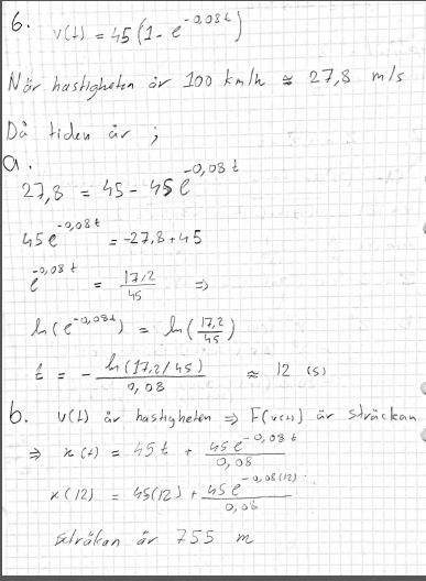 stillastående, är v(t)=45(1 - 45e-0.08t)  där v mäts m/s och t i s.