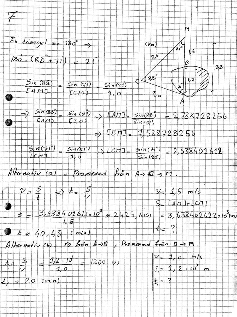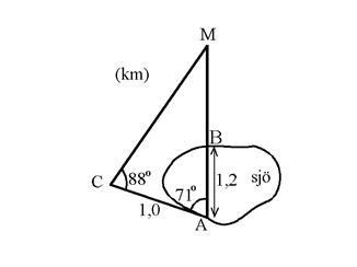 b) Ro en båt från A till B och promenad från B till M.